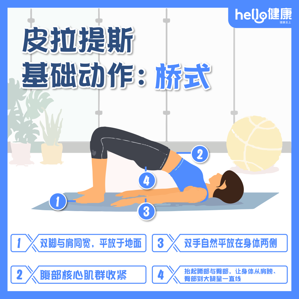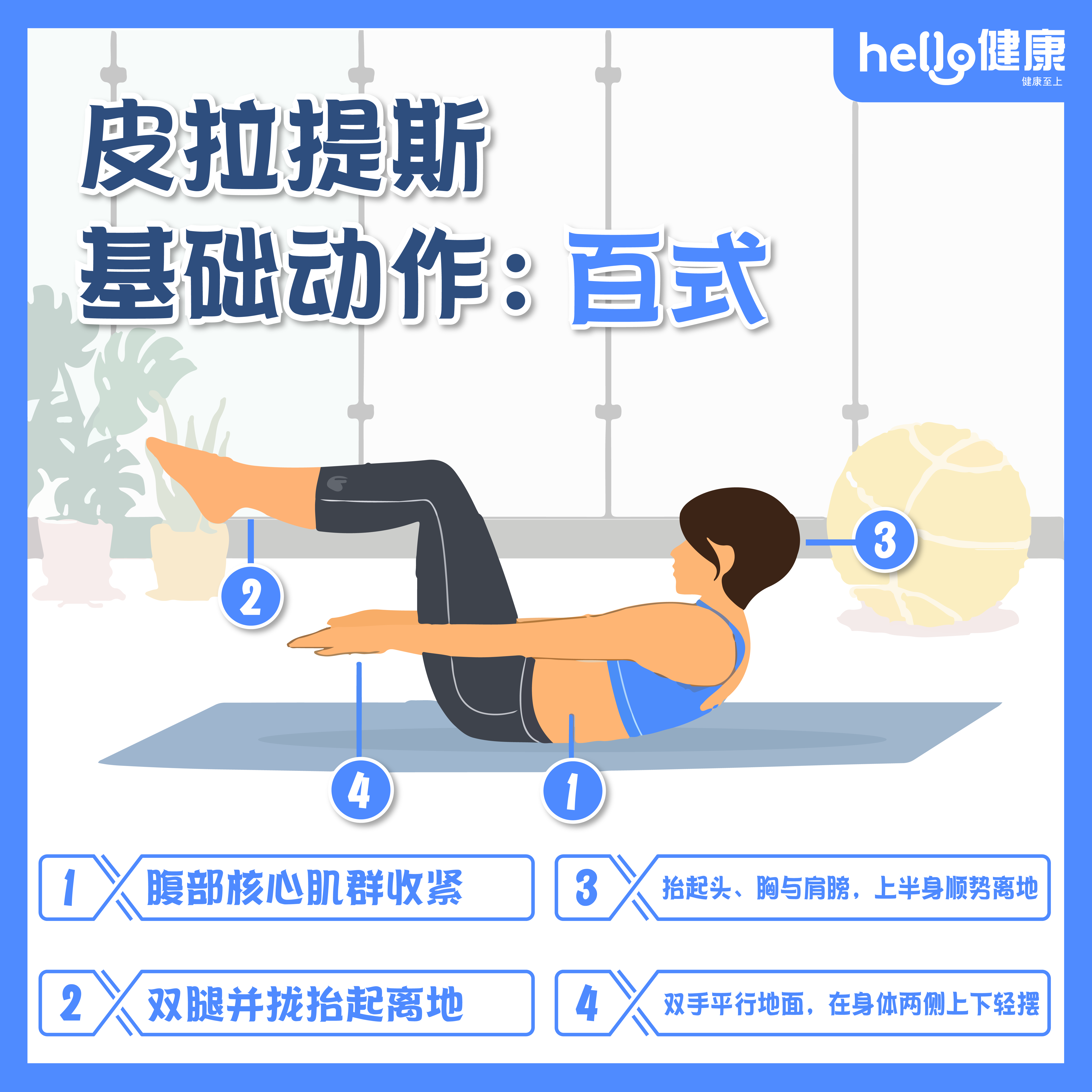 以下介绍五个适合初学者的皮拉提斯基础动作。每个动作的练习次数可视个人体能而定,做到肌肉轻微酸胀即可。练习过程中,务必保持规律呼吸:以鼻子吸气及以嘴巴吐气。让身体在稳定中延展,达到最佳的训练效果。