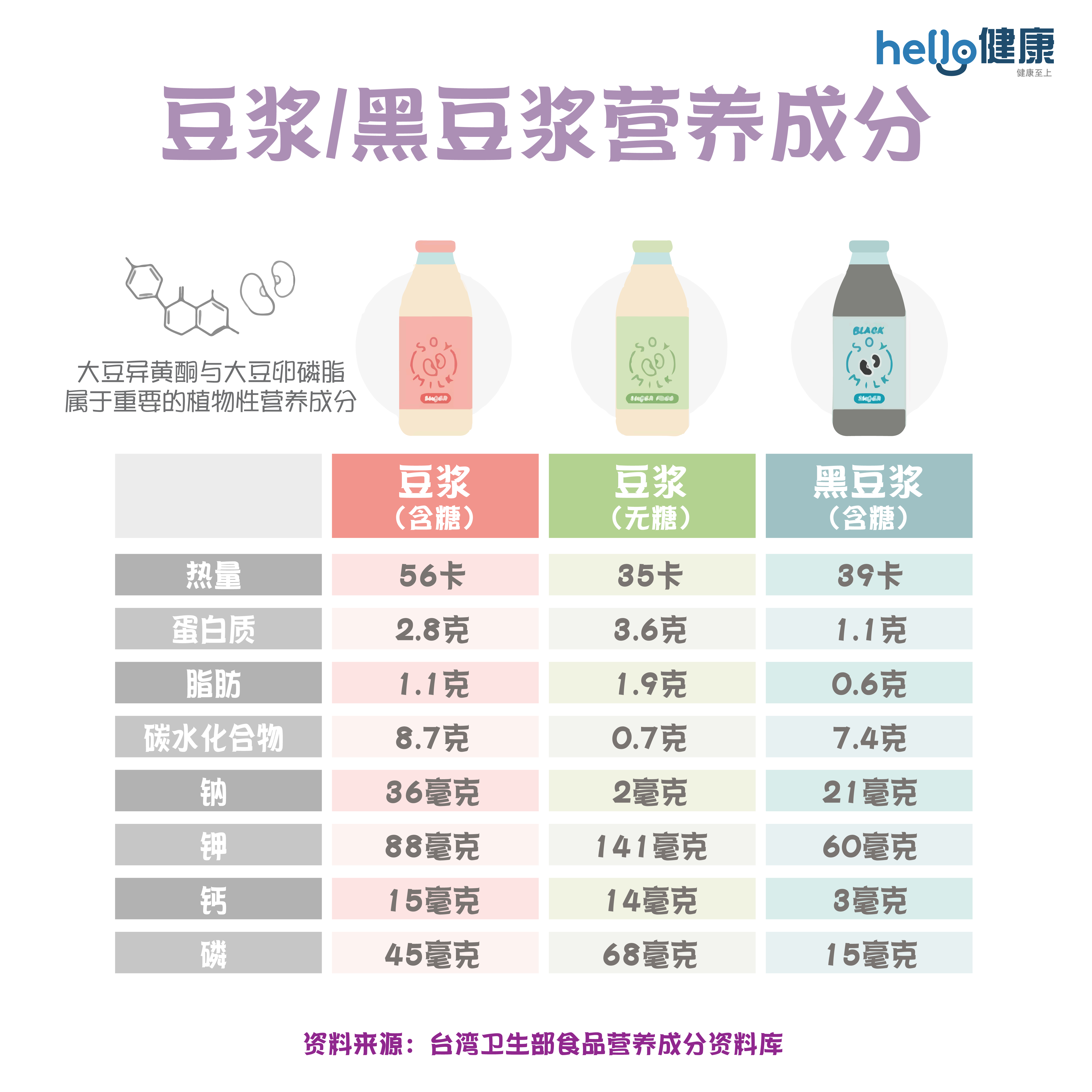 需要特别注意的是,豆浆的钙含量较低,其实并不适合代替牛奶作为获得钙质的主要来源,建议从优格、起司、小鱼干或豆腐等食物摄取。
