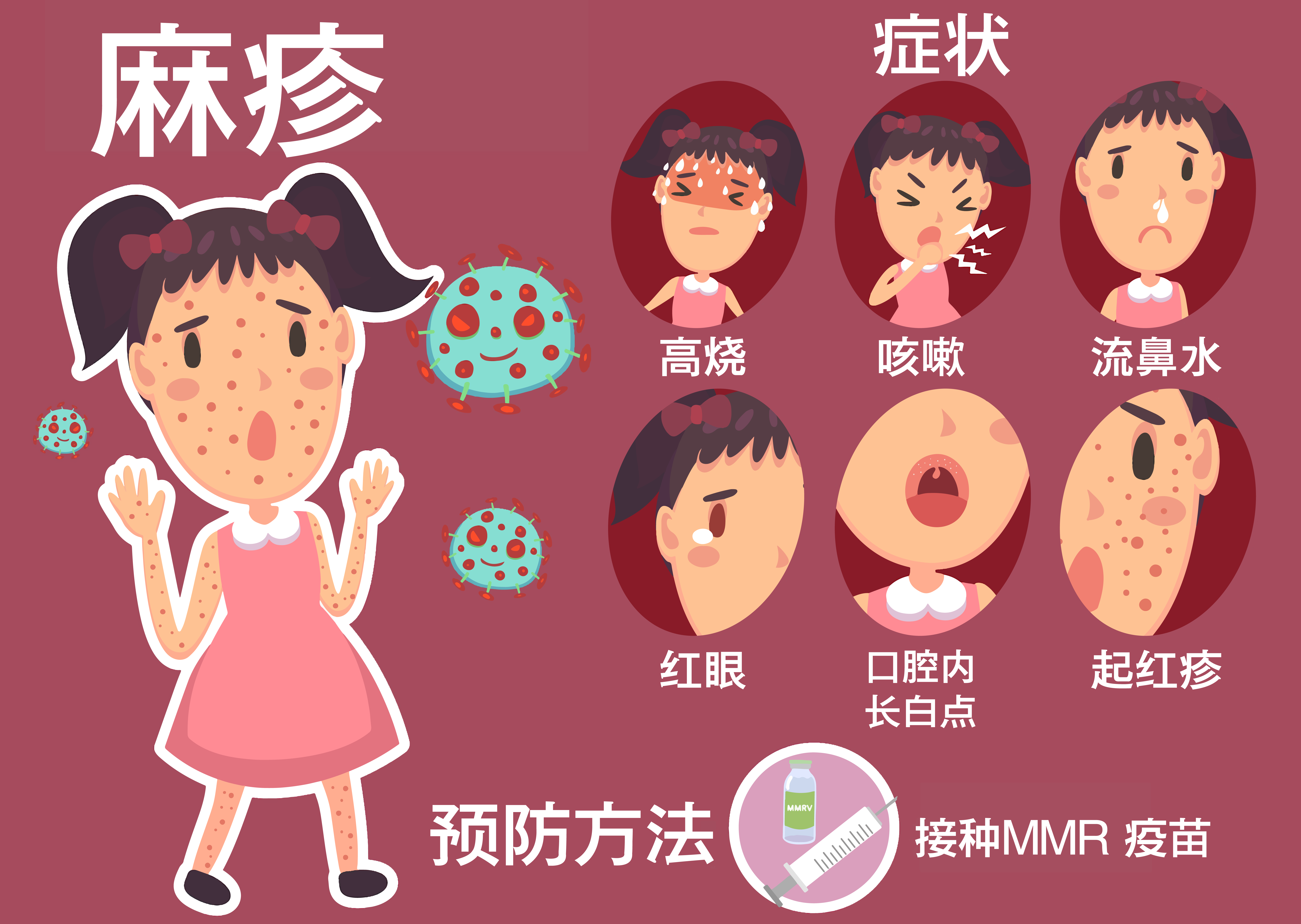 麻疹(Measles)是一种广为人知的疾病。新加坡自推行麻疹疫苗以来,病例数已大幅下降,但近年来在部分地区仍出现零星上升的情况。感染麻疹后,除了会出现红疹及类似感冒的症状,还可能伴随高烧。