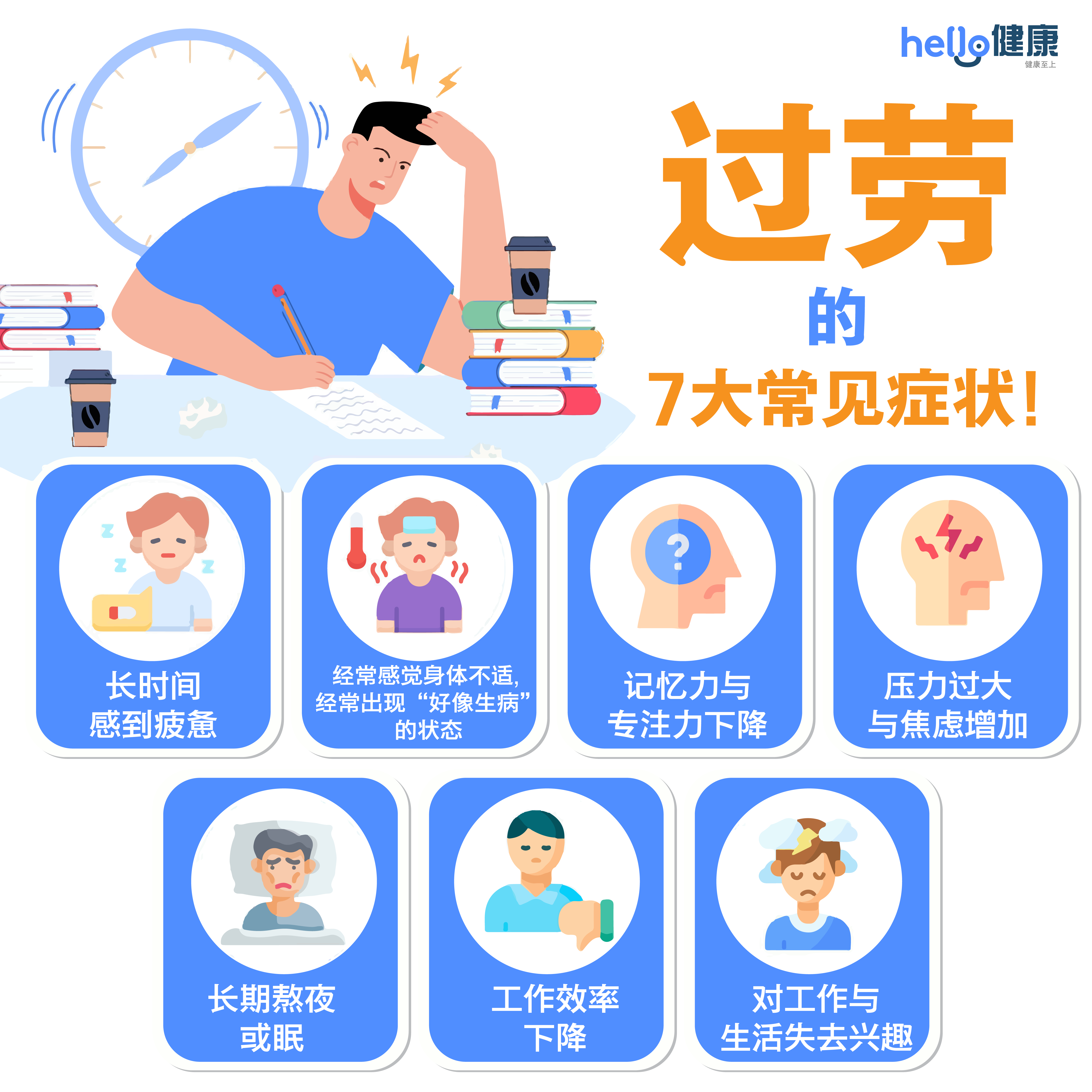 若您在以上问题中有3项或以上经常发生,说明您可能正处于过劳状态。建议您及时调整作息、寻求家人朋友的支持,必要时应向医生或心理健康专科咨询。